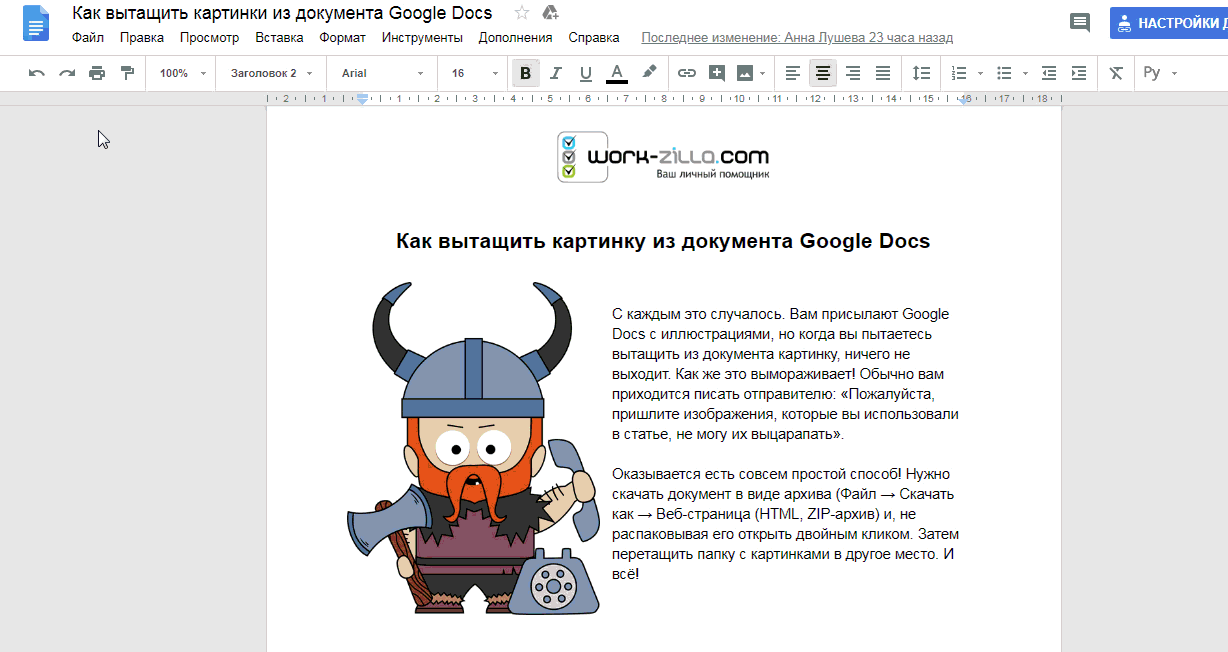 Как вытащить картинку из документа Google Docs
