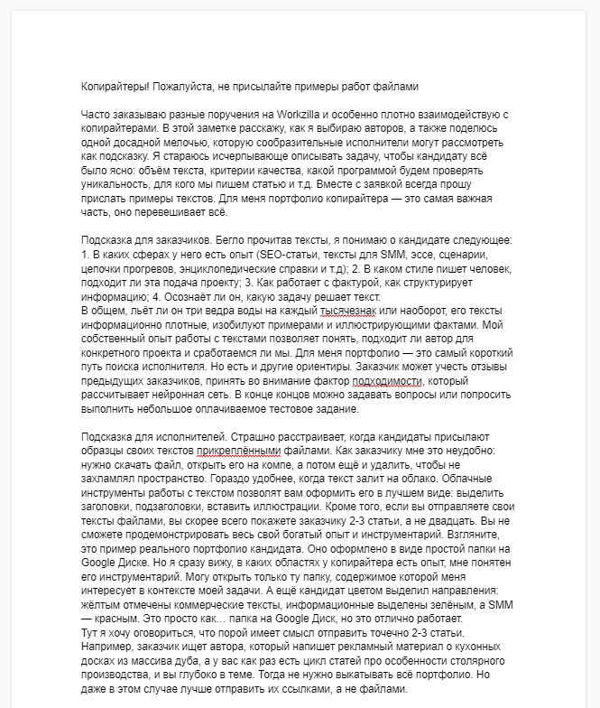 📂Копирайтеры! Пожалуйста, не присылайте примеры работ файлами