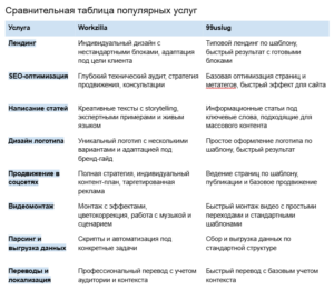9️9️ Сравним Workzilla и 99uslug [полезная табличка]